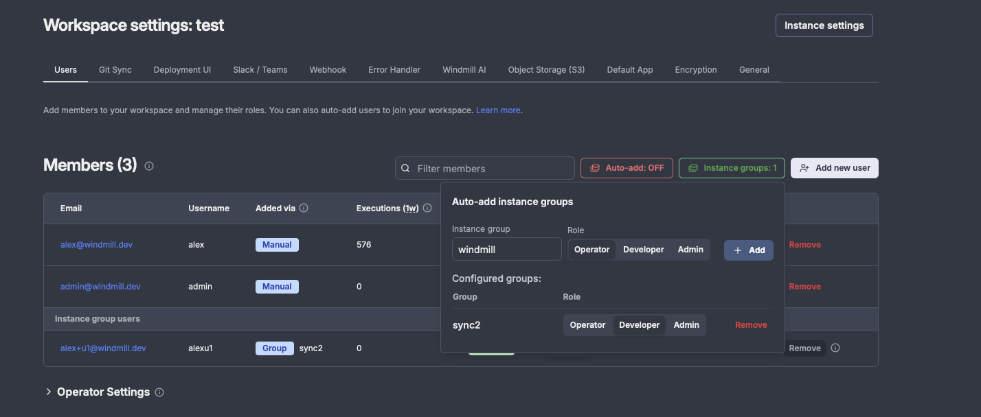 - Support for multiple instance groups per workspace with different role assignments.